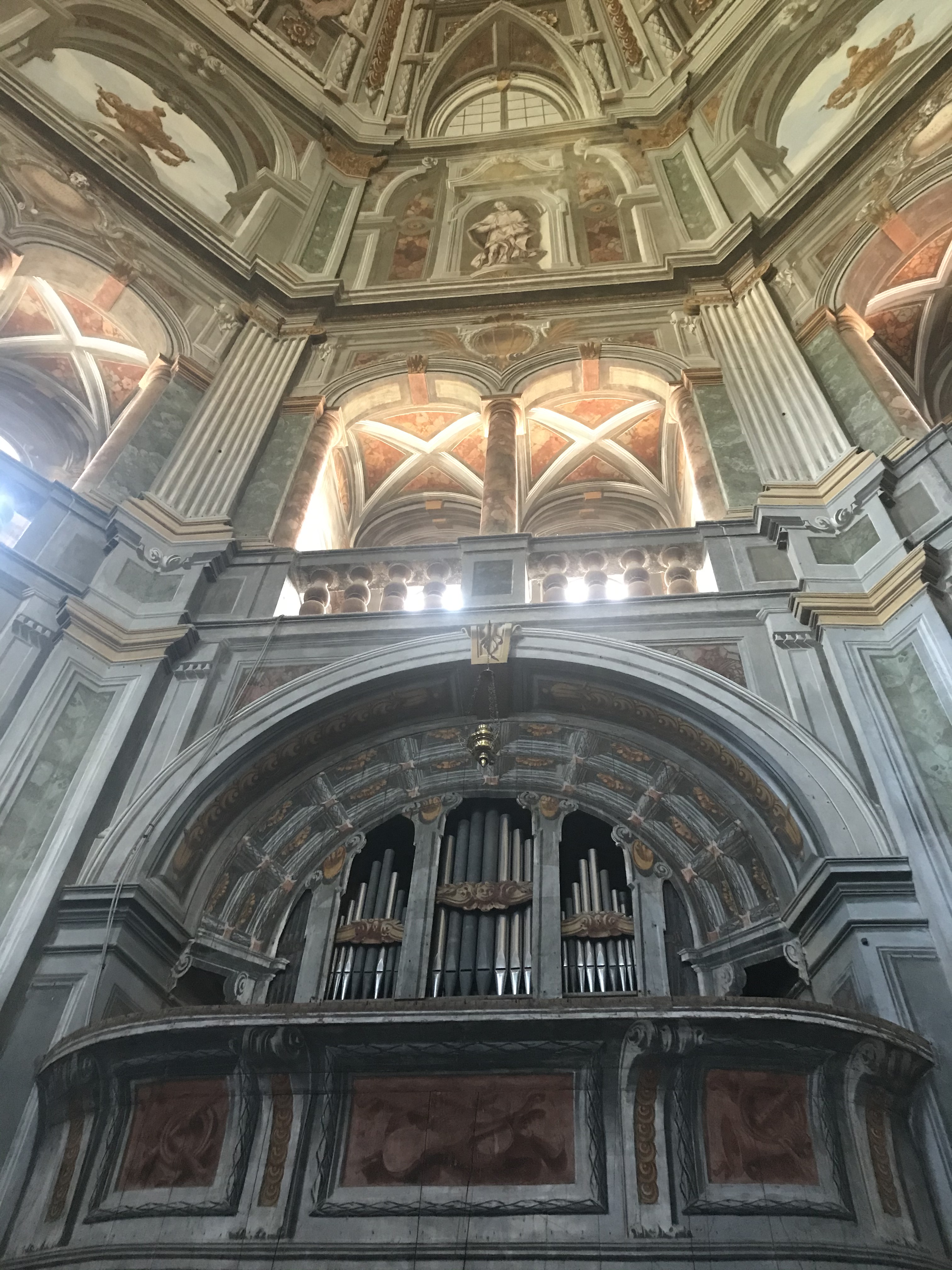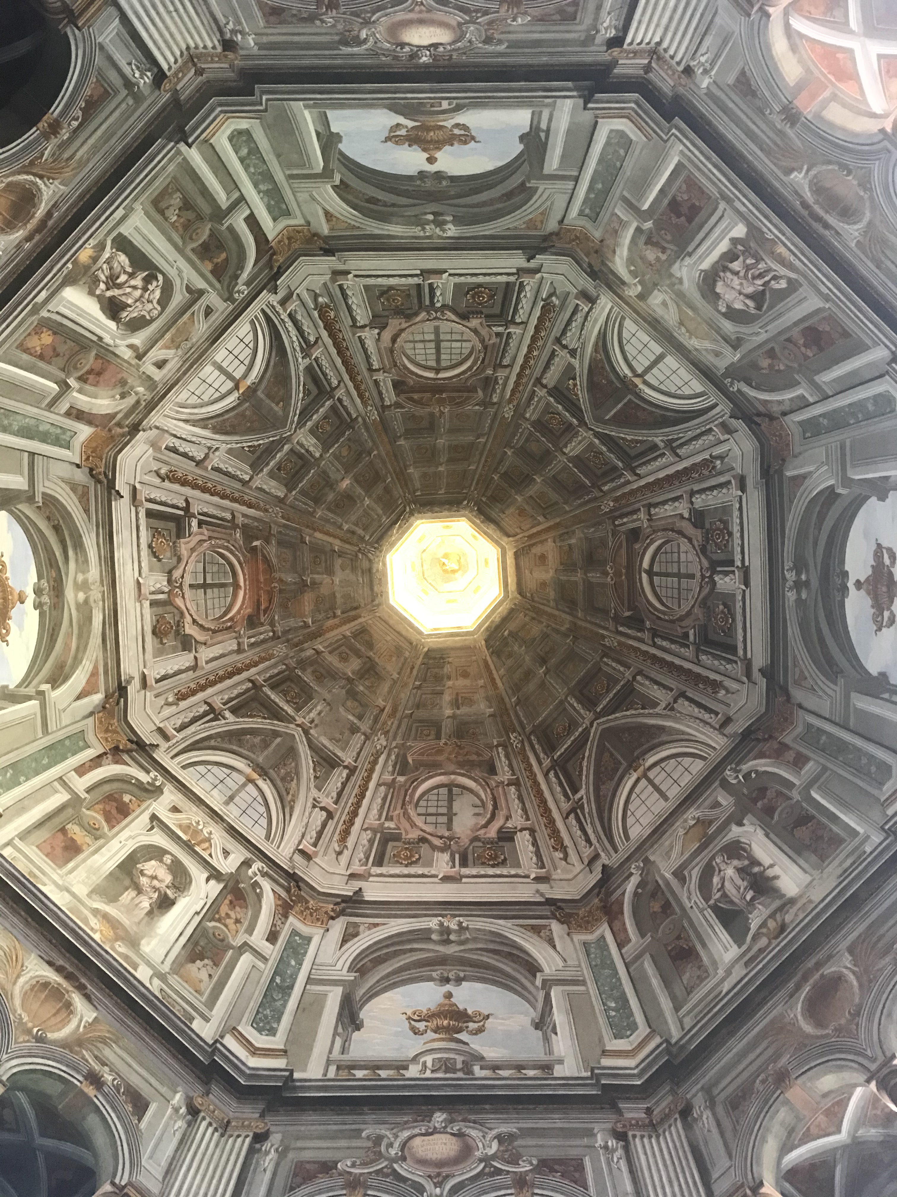 De vuelta a la piazza Ducale, no dejéis de visitar la chiesa dell’Assunta, que no se le puede hacer un feo a la catedral. Si os fijáis, su fachada es singular: se caracteriza por un bonito juego de mármoles rosas y blancos. Dentro, cada siglo dejó su huella. A mí me parecieron especialmente curiosas dos cosas: por un lado, la cappella del Santissimo Sacramento, de estilo rococó, por su elegante cúpula agujereada y por la gran cantidad de reliquias que alberga. Por otro lado, la sacristía monumental, por su mobiliario, que marca la transición del gusto barroco al estilo neoclásico.