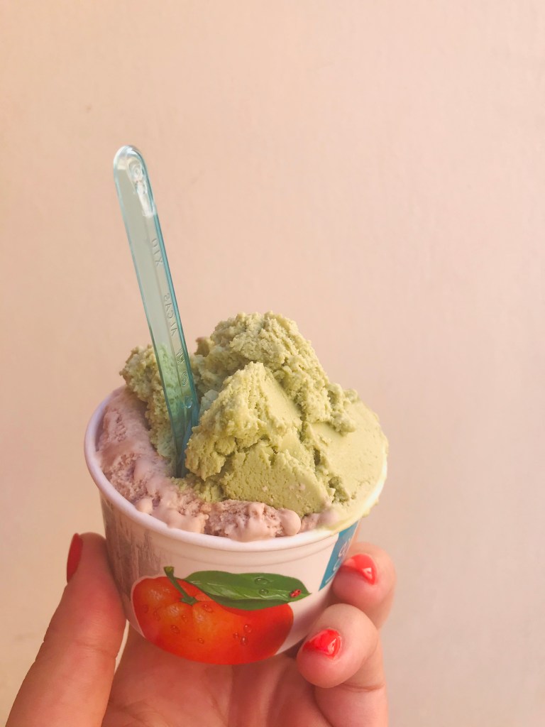 Una vez dentro del casco antiguo de nuevo, mi recorrido terminó en la piazza d’Armi, ¡comiéndome un helado de avellana y pistacho bien rico!