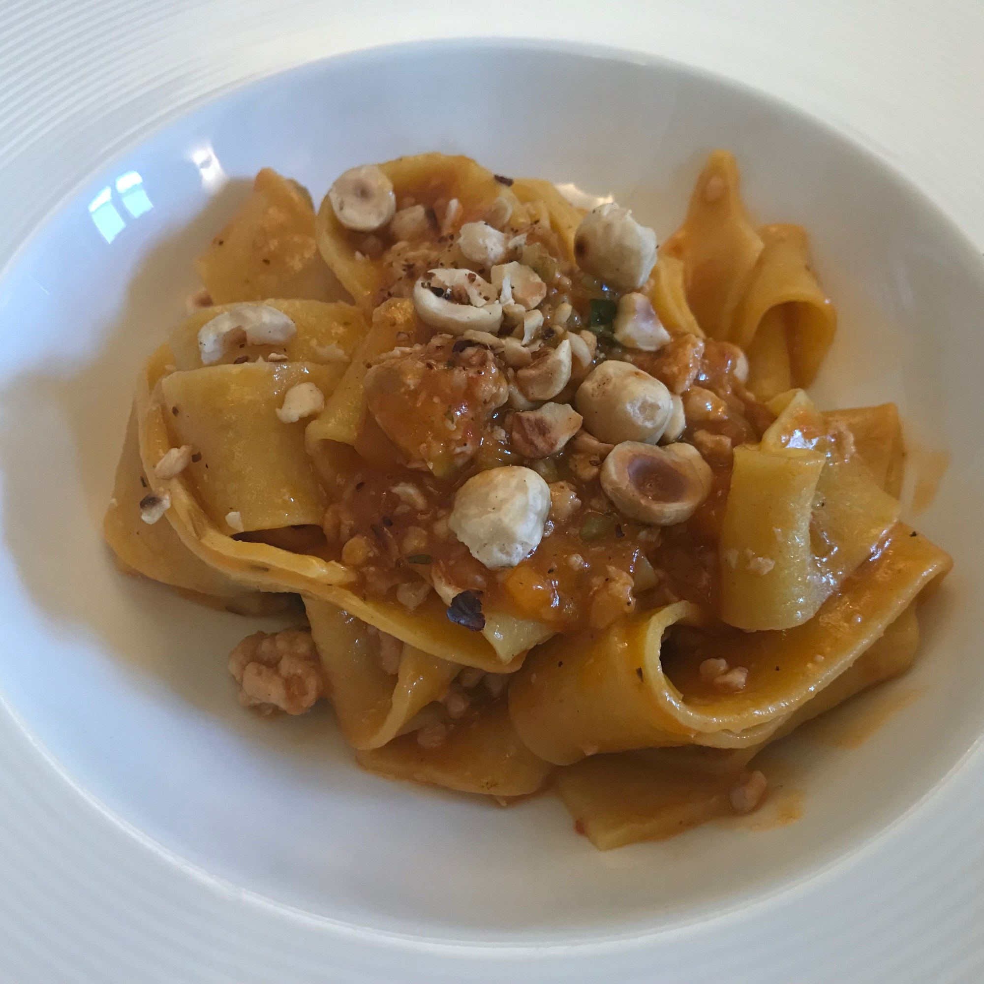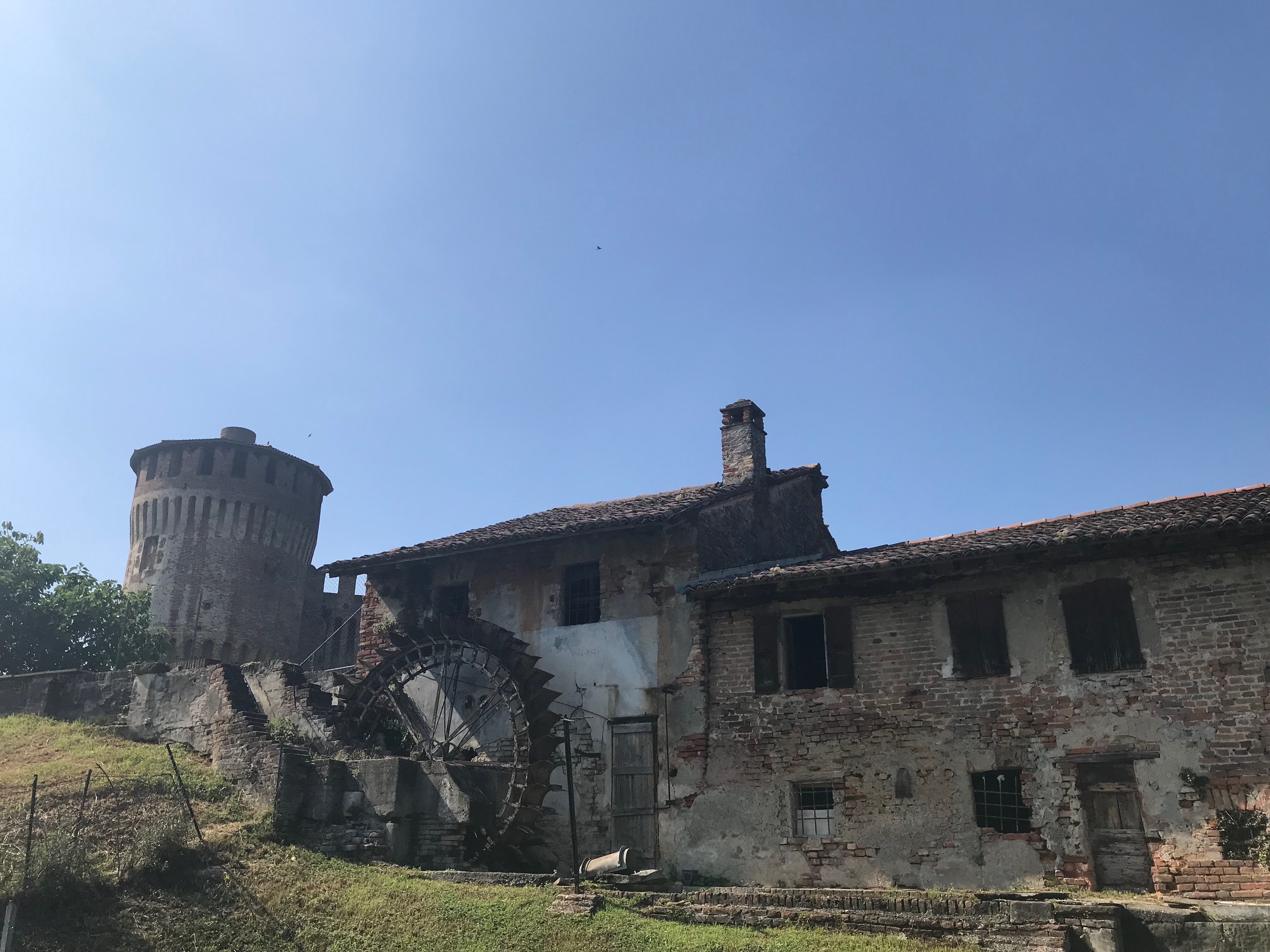La ciudad se encuentra en plena llanura padana, a orillas del río Po. Por esto, si disponéis de coche, lo podéis aparcar en la via del Porto e ir a dar un paseo por el parco al Po, un amplio espacio verde con chopos donde los lugareños toman el sol, hacen pícnics, van en bici o simplemente se relajan. Nosotros dimos una vuelta por la zona para hacer hambre y, a mediodía, fuimos al restaurante La Lucciola, que se encuentra en la entrada del parque. Es un lugar agradable y los platos que sirven son de excelente calidad. Yo me cogí tortelli rellenos de berenjena y albahaca (12 euros) y un trocito de tarta de pistacho con sabayón (6 euros). Mi postre era espectacular y los que vi de refilón que iban a otras mesas tenían pintaza por lo que os aconsejo que no pidáis primero y segundo porque no llegaréis al postre, que es lo mejor. También os recomiendo que reservéis con antelación porque, a pesar de que el restaurante es grande, se peta mucho a partir de las 13.00.