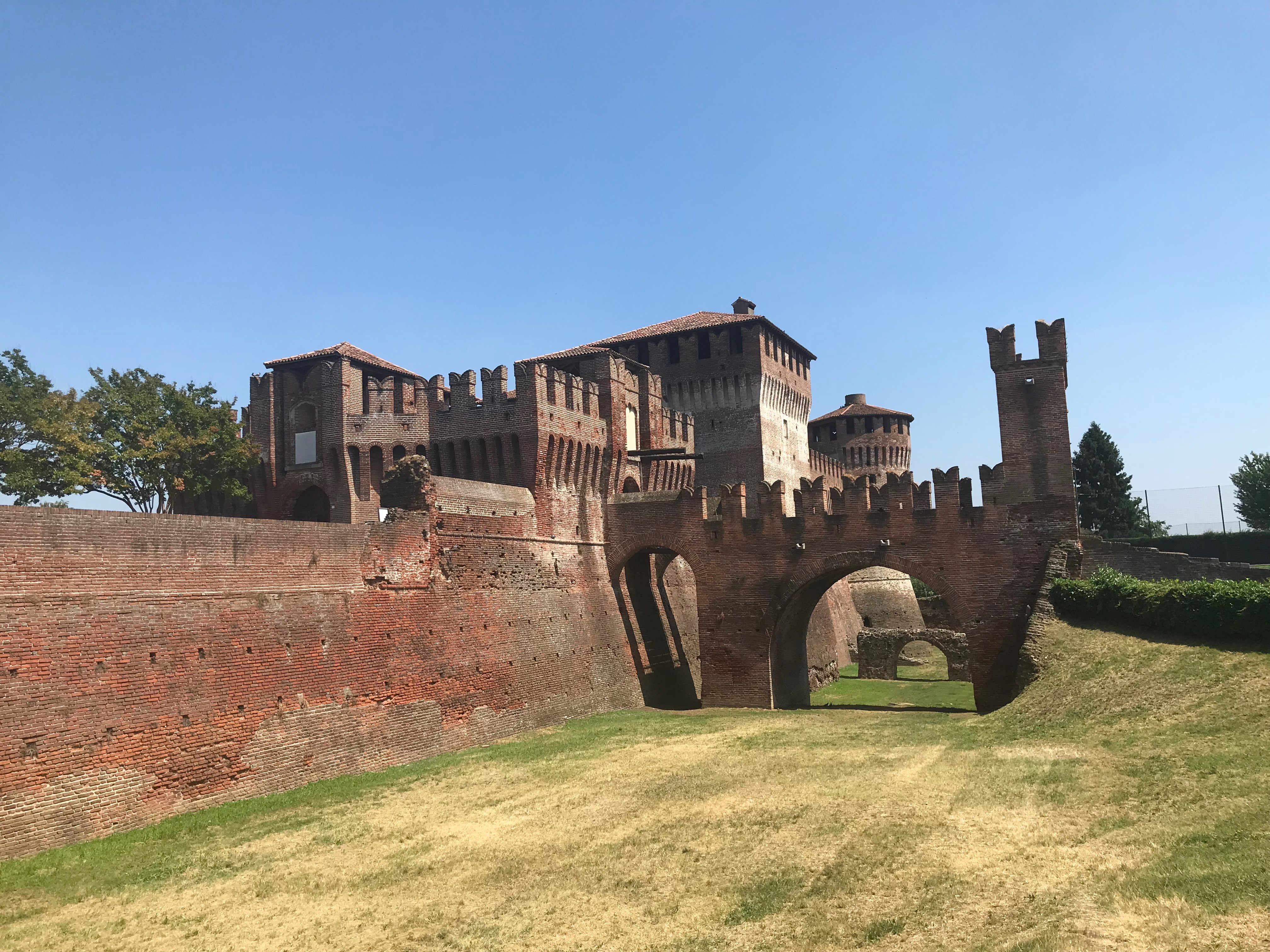 Desde la piazza sant’Agata también vais a ver el naranja chillón de la fachada de Palazzo Trecchi, el último símbolo del núcleo de expansión de la ciudad medieval. Es de 1496 y se construyó como humilde morada para los marqueses Trecchi. Por él han pasado personalidades de la talla de Garibaldi o el rey Vittorio Emmanuele III, ahí es nada.
